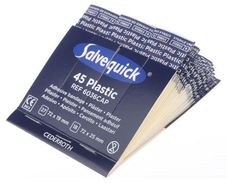 This is 45 Plastic First Aid Bandages Self-Adhesive Waterproof (7.2 x 1.9 cm 7.2 x 2.5 cm) manufactured by RS Pro. The manufacturer part number is CD5RS. The product is made from highly stable and reliable plastic. It is waterproof yes . Additionally, it is self-adhesive yes . It contains 45 item per package . It comes in plaster configuration. The product is available in 7.2 x 1.9 cm, 7.2 x 2.5 cm size.
