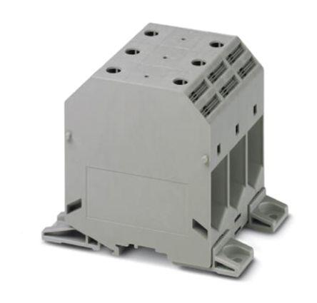 This is CLIPLINE Non-Fused Terminal Block 3 Way/Pole Screw Terminals 35 → 150 mm² Screw PA 1 kV manufactured by Phoenix Contact. The manufacturer part number is 3076507. The product has a current rating of 309a. The product is available in screw configuration. Moreover, the product has a nominal 1 kv voltage rating. The product ukh 150-3l-f, is a highly preferred choice for users. It has a decent grey colour. The product is made from highly stable and reliable pa. It allows screw termination method. It comprises 3 ways. Concerning wire's size, it is 35 → 150 mm².