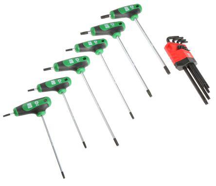 This is 9 Piece L Shape Torx Key Set manufactured by Wera. The manufacturer part number is 05024179050. It is a l product with unique specifications. The product is made from highly stable and reliable stainless steel. Moreover, it has tx10 x 85 mm, tx15 x 90 mm, tx20 x 96 mm, tx25 x 104 mm, tx27 x 112 mm, tx30 x 122 mm, tx40 x 132 mm, tx8 x 76 mm, tx9 x 79 mm set contents . Additionally, it has a long arm . The product consists of 9 pieces.