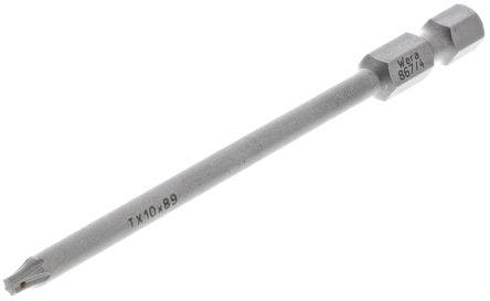 This is Driver Bit Torx Driver Bit T10 x 89 mm manufactured by Wera. The manufacturer part number is 05060186001 867/4 Z TORX. The product consists of 1 pieces. It has a torx head and is ideal choice for a variety of demanding applications. It comes in driver bit configuration. The product is available in t10 x 89 mm size.