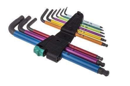 This is L Shape Long Arm Hex Key Set 9 pieces Alloy Steel manufactured by Wera. The manufacturer part number is 950/9 Hex-Plus Multicolour 1 SB. It is available in metric package. It has a ball end type hex key . A quality product with a nice blacklaser finish. The product is made from highly stable and reliable alloy steel. It is a l product with unique specifications. Its hex key size is about 4mm . Additionally, it has a long arm . The product consists of 9 pieces.