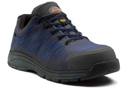 This is Blue/Grey ESD Trainer UK 6 EUR 40 S1P manufactured by Dickies. The manufacturer part number is FC9531 GBU Sz6. While in the UK, it has the size of 6. It is a lace up closure with unique specifications. Anti-Slip Options - yes. It features a s1p safety rating. Anti-Static Options - yes. Water Resistant Options - yes. Safety Toe Options - yes. It has a decent blue/grey colour. Its sole material is eva, rubber . Penetration Resistant Options - yes. It is rated with src slip resistance. This composite safety toe is a preferred choice for a wide variety of professionals and DIYers. A bespoke product is highly resistant to fuel, oil. ESD Safety - yes. It has a standard 40 size EUR shoe . The midsole is a non-metallic sole. It comes in trainer configuration.