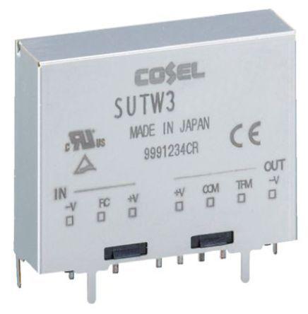 This is 3W Isolated DC-DC Converter Through Hole Vin 9 → 18 V dc Vout ±15V dc I/O isolation 500V ac manufactured by Cosel. The manufacturer part number is SUTW31215.