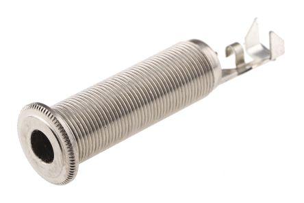 This is 6.35 mm Panel Mount Jack Socket 2 manufactured by Switchcraft. The manufacturer part number is 151-RS. The product is available in panel mount configuration. In addition, female is the available "Gender" of the product. It has a decent natural colour. It allows solder termination method. The product also features robust steel housing material. The high-quality nickel is used as contact plating material. It has about 2 number of poles/ways . The product is made from sturdy copper alloy materials. It comes in mono configuration. It has straight body orientation. The product is available in 6.35 mm size.
