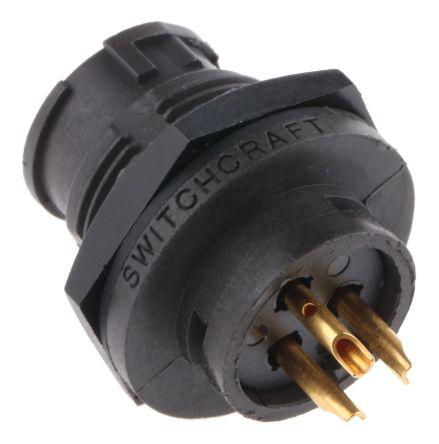 This is EN3 Series 3 Pole Panel Mount Connector Male Contacts manufactured by Switchcraft. The manufacturer part number is EN3P3M-RS. The product is available in panel mount configuration. Moreover, the product has a nominal 600 v ac voltage rating. The product en3, is a highly preferred choice for users. It has straight body orientation. This male contact is widely suited for specific applications. It comprises a plug. It allows solder termination method. The product contains 3 contacts.