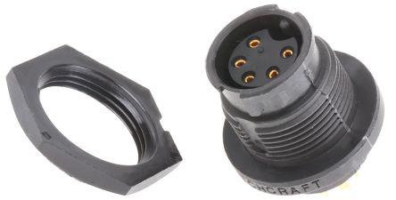 This is EN3 Series 5 Pole Panel Mount Connector Female Contacts manufactured by Switchcraft. The manufacturer part number is EN3P5F-RS. The product is available in panel mount configuration. Moreover, the product has a nominal 600 v ac voltage rating. The product en3, is a highly preferred choice for users. It has straight body orientation. This female contact is widely suited for specific applications. It comprises a socket. It allows solder termination method. The product contains 5 contacts.