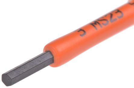 This is 3 mm L Shape Long Arm Hex Key Insulated Chrome Molybdenum Steel manufactured by Sibille. The manufacturer part number is MS23RS-3. It is available in metric package. VDE/1000V Approval Options - yes. It has a hex wrench type hex key . A quality product with a nice blackened finish. The product is made from highly stable and reliable chrome molybdenum steel. It is a l product with unique specifications. Moreover, it has 3 mm set contents . Its hex key size is about 3mm . Additionally, it has a long arm . The product consists of 1 pieces.