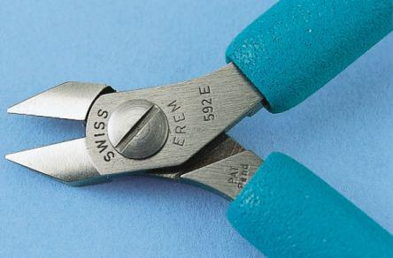 This is Tip Type Wire Cutter 115mm overall length 0.8mm cutting capacity manufactured by Erem by Weller. The manufacturer part number is 592E. Its typical cutting capacity is 0.8mm . It is offered to cut copper wire, hard wire materials . It comes in tip configuration. It has an electrostatic discharge safe feature yes . It has an overall length of 115mm.