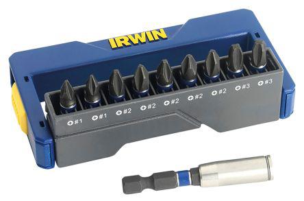 This is 10 pieces Steel Impact Insert Bit Set Driver Bit Set 2 x PH1 2 x PH3 5 x PH2 manufactured by Irwin. The manufacturer part number is 1923419. The product consists of 10 pieces. The product is made from highly stable and reliable steel. It comes in impact bit set configuration. It has a phillips head and is ideal choice for a variety of demanding applications. The product is available in ph1, ph2, ph3 size.