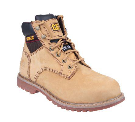 This is Men's Honey Leather Boot manufactured by Caterpillar. The manufacturer part number is Electric Hi Honey 12. While in the UK, it has the size of 12. It is a lace up closure with unique specifications. In addition, men is the available "Gender" of the product. It has a decent honey colour. The product's upper materials include leather. It is offered with 12 US shoe size . The midsole is a ease sole. It comes in boot configuration.