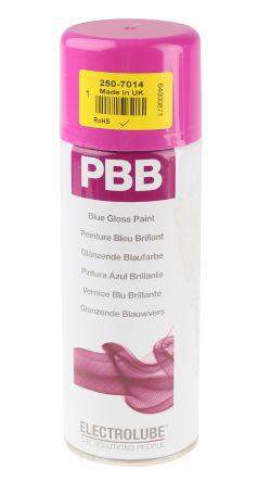 This is 400mL Blue Gloss Spray Paint manufactured by Electrolube. The manufacturer part number is PBB400.