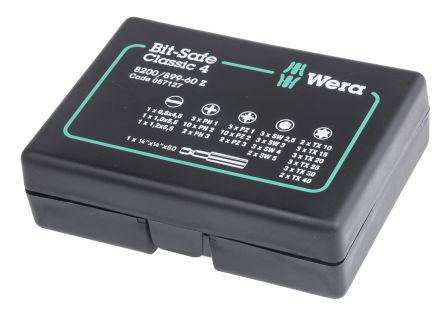 Bit Holder: 1/4 in x 50, Hex-Plus: 2.5 x 25 (3), Hex-Plus: 3 x 25 (3), Hex-Plus: 4 x 25 (3), Hex-Plus: 5 x 25 (2), Phillips: PH1 x 25 (3), Phillips: PH2 x 25 (10), Phillips: PH3 x 25 (2), Pozidriv: PZ1 x 25 (3), Pozidriv: PZ2 x 25 (10), Pozidriv: PZ3 x 25 (2), Slotted: 0.6 x 4.5 x 25, Slotted: 1 x 5.5 x 25, Slotted: 1.2 x 6.5 x 25, Torx: TX10 x 25 (2), Torx: TX15 x 25 (3), Torx: TX20 x 25 (3), Torx: TX25 x 25 (3), Torx: TX30 x 25 (3), Torx: TX40 x 25 (2)