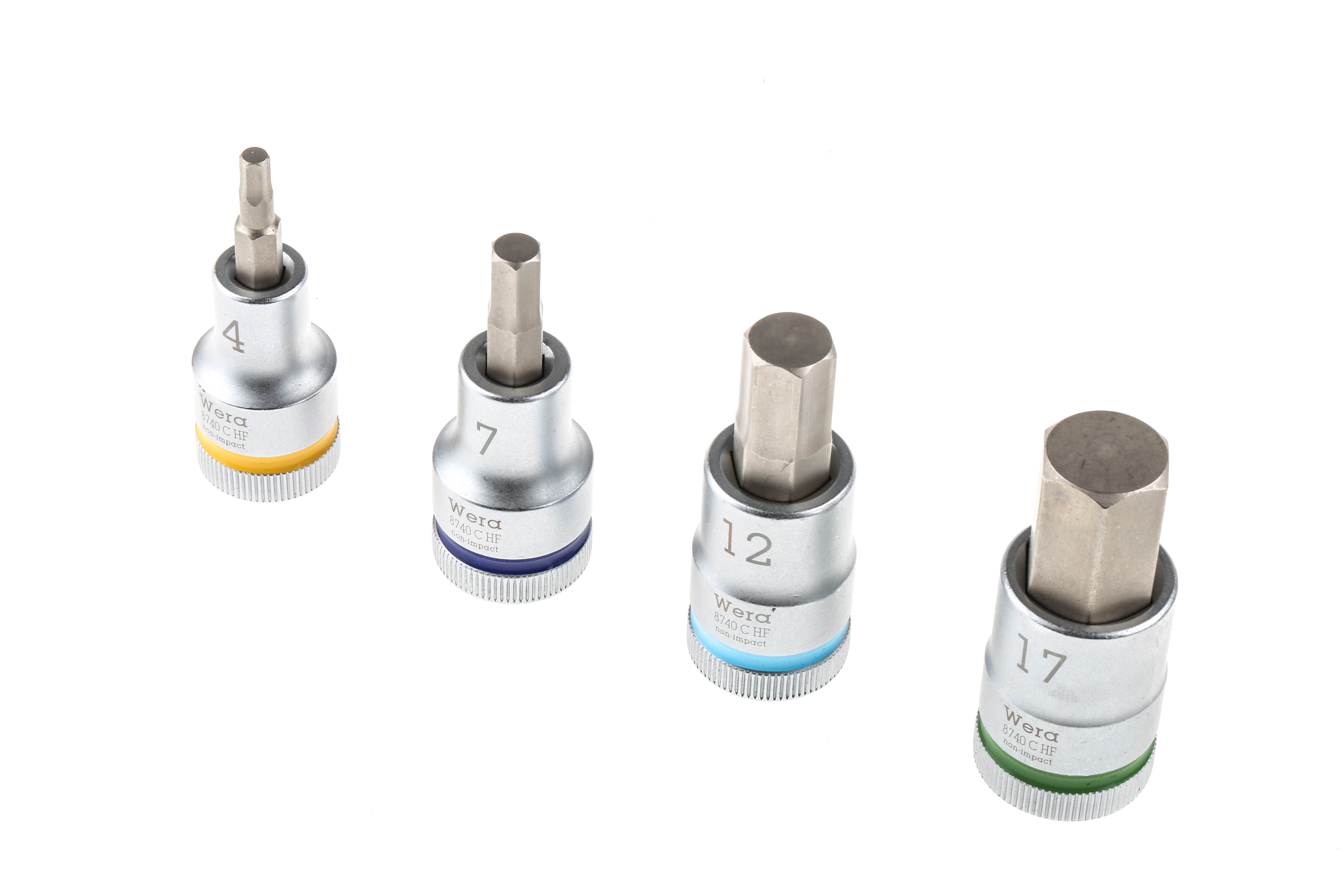 This is with 1/2 in Drive Socket Hex manufactured by Wera. The manufacturer part number is 05004201001. The product has a drive size of 1/2 in. The product features a square drive. The product is made from highly stable and reliable chrome molybdenum steel. The socket's size is 4 mm, 5 mm, 6 mm, 7 mm, 8 mm, 10 mm, 12 mm, 14 mm, 17 mm.