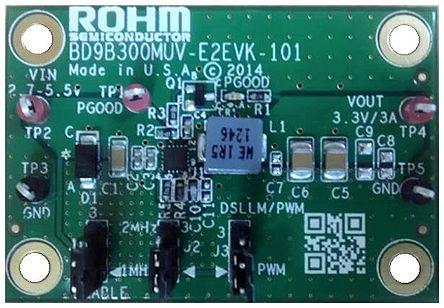 This is Rohm Eval Board manufactured by ROHM. The manufacturer part number is BD9B300MUV-EVK-001. It has a/an switching regulator power management function . Featured Device bd9b300muv. The kit is classified as evaluation board.