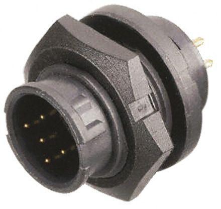 This is EN3 Series 5 Pole Panel Mount Connector Plug Male Contacts manufactured by Switchcraft. The manufacturer part number is EN3P5M-RS. The product is available in panel mount configuration. Moreover, the product has a nominal 600 v ac voltage rating. The product en3, is a highly preferred choice for users. It has straight body orientation. This male contact is widely suited for specific applications. It comprises a plug. It allows solder termination method. The product contains 5 contacts.