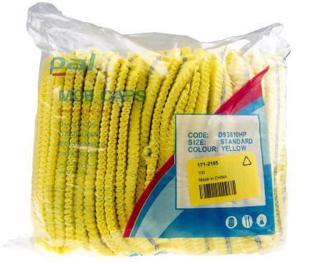 This is Yellow Polypropylene Fibre Mob Cap Metal Detectable manufactured by PAL. The manufacturer part number is D93610ON. It has a decent yellow colour. The product is made from highly stable and reliable polypropylene fibre. It comes in mob cap configuration. It contains 35 item per package .