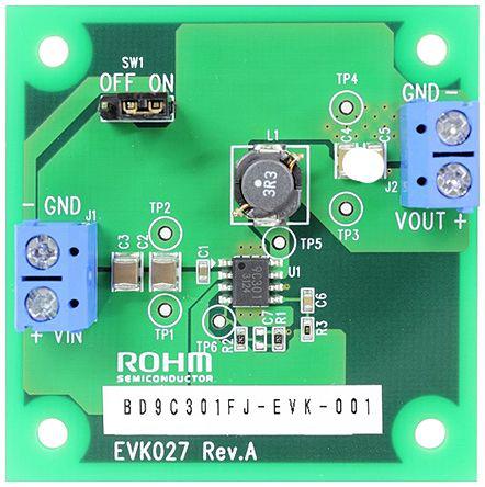 This is manufactured by ROHM. The manufacturer part number is BD9C301FJ-EVK-001. It has a/an buck converter power management function .