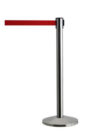 This is barrier in mirror effect with 2.3m red manufactured by Tensator. The manufacturer part number is QWYPOST-1PR5. It is assigned with a trade name of queueway. It has a decent red colour. Its tape is 2.3m in length . It has a red colour tape .