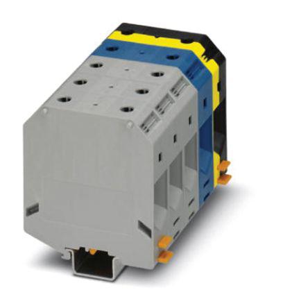 This is CLIPLINE Series 1 kV High Current Connector Screw Termination manufactured by Phoenix Contact. The manufacturer part number is 3076455. The product carries single levels. The product has a current rating of 232a. Moreover, the product has a nominal 1 kv voltage rating. The product ukh95-3l/n/fe, is a highly preferred choice for users. It has a decent black, blue, grey, yellow colour. It allows screw termination method. Concerning wire's size, it is 25 → 95 mm².