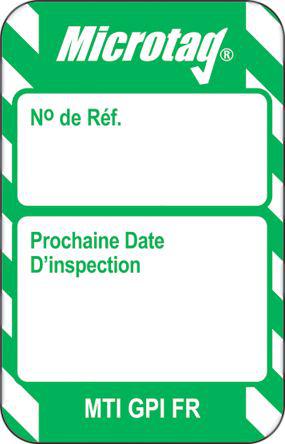 This is White on Green Micro Tag manufactured by Brady. The manufacturer part number is MIC-FR-MTI-GPI-GN-20. It has white on green insert colour . It is offered in french language . It contains 20 item per package . It comes in insert configuration.