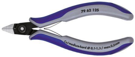 This is Diagonal Type Wire Cutter 125mm overall length 1.3mm cutting capacity manufactured by Knipex. The manufacturer part number is 79 62 125 RS. It has a/an diagonal type cut . Its typical cutting capacity is 1.3mm . It is offered to cut hard wire, medium wire, soft wire materials . It comes in side cutter configuration. It has an overall length of 125mm.
