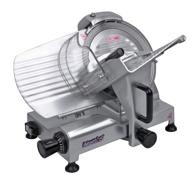 The iMettos heavy duty Meat Slicer is a gravity belt-driven slicer which has powerful motors. Stain resistant anodised aluminium finish which is easy to clean.