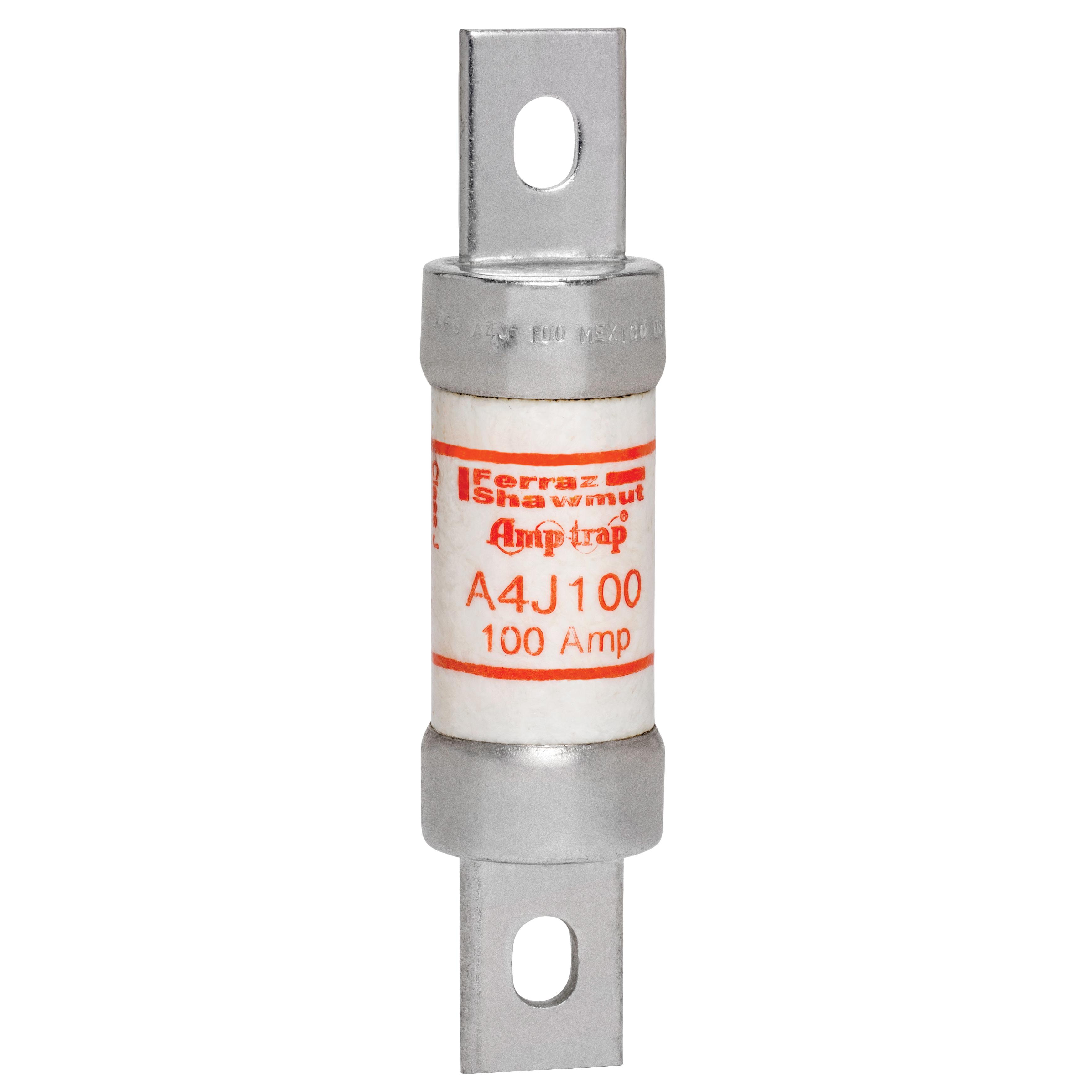 This is manufactured by Mersen USA Newburyport-MA L.L.C.. The manufacturer part number is A4J100. It is assigned with possible HTSUS value of 8536.10.0040. The product is rohs3 compliant. Whereas, the breaking capacity of the product at rated voltage is 200ka ac, 100ka dc. 300 vdc of DC voltage rating. It is approved by csa, ul. Moreover, the product comes in cylindrical, blade terminal (bolt). The product exhibits 600 vac of AC voltage rating. The product is widely employed in electrical, industrial. It responds within fast blow. Class Information: j. The mersen usa newburyport-ma l.l.c.'s product offers user-desired applications. The product's diameters include 1.142" dia x 4.606" l (29.00mm x 117.00mm). It has a long 2 weeks standard lead time. Additionally, the product's output is 100a. Its typical moisture sensitivity level is not applicable. The product is available in bolt mount configuration. The product a4j, is a highly preferred choice for users. In addition, box is the available packaging type of the product. It integrates a cartridge fuse type. The product is designated with the ear99 code number.