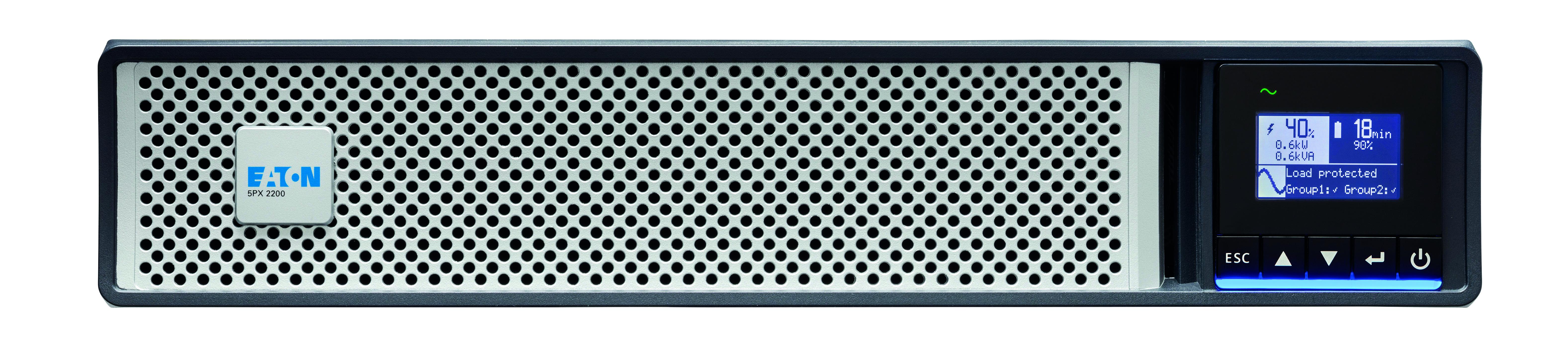 This is 120V Input Rack UPS 2200VA (2.2kW) manufactured by Eaton. The manufacturer part number is 5PX2200IRTNG2BS. The product is available in rack mount, stand alone configuration. Its accurate length is 85.5mm. The plug is a highly reliable c20 with long service life. Furthermore, the product is 438mm wide. The product comes in 603mm depth. Its input voltage is 120v. Features a 230v output voltage. It has a model 5px g2. It comes in ups configuration. Feature 2.2kw of power rating. It has about 2200va VA rating .