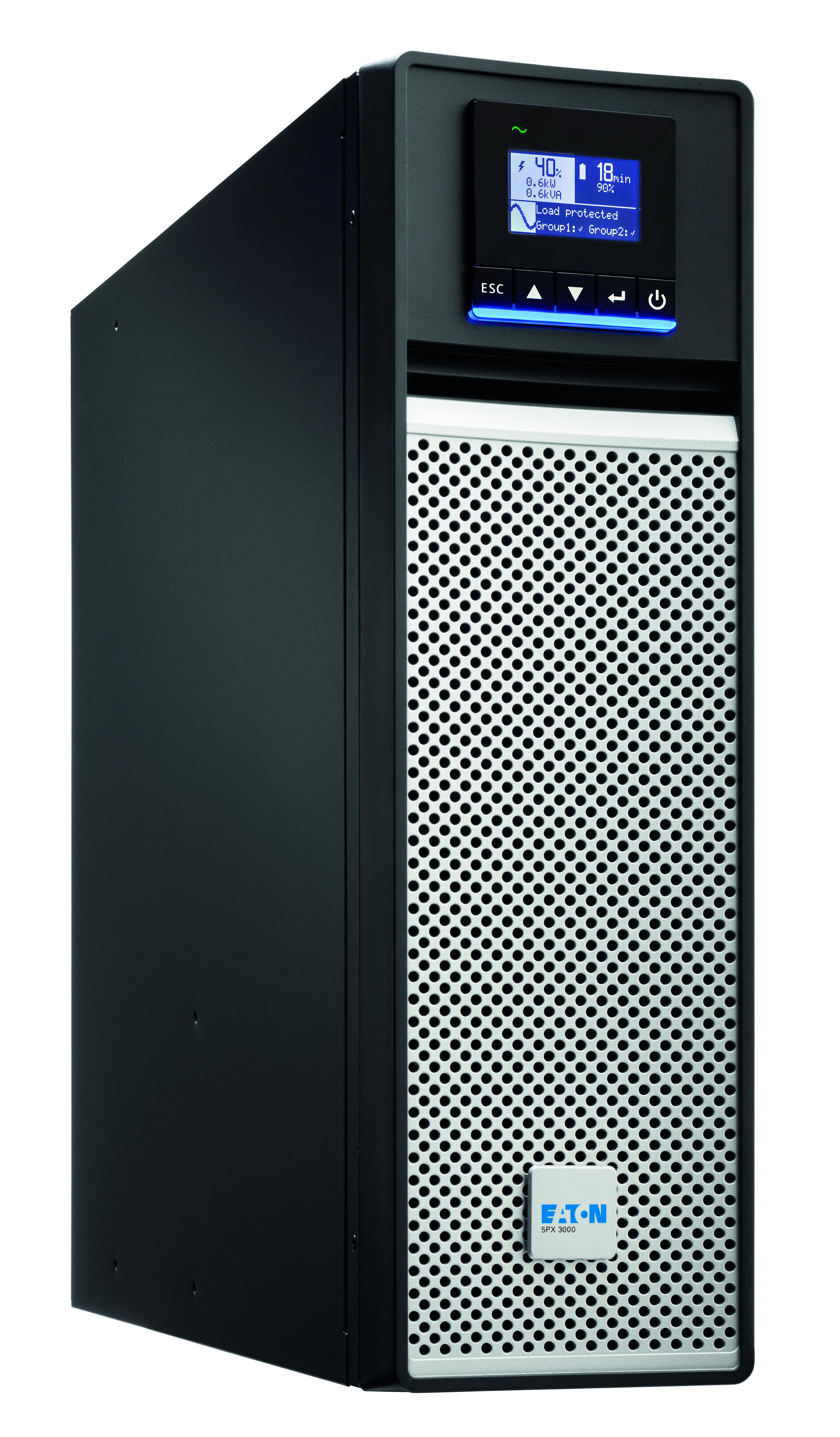 This is 120V Input Rack UPS 3000VA (3kW) manufactured by Eaton. The manufacturer part number is 5PX3000IRTNG2BS. The product is available in rack mount, stand alone configuration. Its accurate length is 85.5mm. The plug is a highly reliable c20 with long service life. Furthermore, the product is 438mm wide. The product comes in 603mm depth. Its input voltage is 120v. Features a 230v output voltage. It has a model 5px g2. It comes in ups configuration. Feature 3kw of power rating. It has about 3000va VA rating .