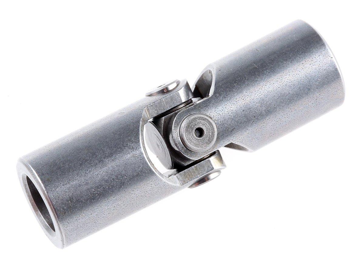 This is Universal Joint Single Plain Bore 10mm 56mm Length manufactured by RS Pro. The manufacturer part number is 790-6722. Its peak torque is approximately 600nm . The product is made from highly stable and reliable steel. It has a single joint(s) . It has a 16mm outer hub diameter . It has a maximum 1000rpm speed . It has an overall length of 52mm. The bore with 10mm of dimensions. It has a maximum 45° working angle . It has a plain type joint . It comes with a bored hub .