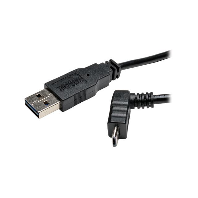 This is manufactured by Tripp Lite. The manufacturer part number is UR050-001-UPB. It is assigned with possible HTSUS value of 8544.42.2000. The product is rohs compliant. Specifications include usb 2.0. The product is available in a male to micro b male, up angle configuration. It is shipped in bulk package . Moreover, the product has a wire gauge of 28 awg, 28 awg. Its typical moisture sensitivity level is not applicable. Its accurate length is 1.00' (304.8mm). It has a robust 480mbps transfer rate. The splendid features of the product include data transfer and charge, reversible. It has a classic black colour. The product is designated with the ear99 code number.