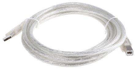 This is USB Cable Assembly Male USB A to Male USB B USB 2.0 Transparent 3m manufactured by RS Pro. The manufacturer part number is 758-7501. The product complies with all safety standards, such as rohs compliant. While the connector B is male usb b. It contains a/an usb 2.0 type USB . The connector A is male usb a connector. The sheath has an adorable transparent colour. Its accurate length is 3m.