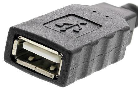 This is Female USB A to Male Micro USB B Adapter USB 2.0 150mm manufactured by RS Pro. The manufacturer part number is 790-3647. While the connector B is male micro usb b. It contains a/an usb 2.0 type USB . The connector A is female usb a connector. The sheath has an adorable black colour. Its accurate length is 150mm.