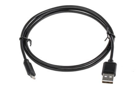 This is Male USB A to Lightning Lightning Cable USB 2.0 1m manufactured by RS Pro. The manufacturer part number is 144-8585. While the connector B is lightning. It contains a/an usb 2.0 type USB . The connector A is male usb a connector. The sheath has an adorable black colour. Its accurate length is 1m.