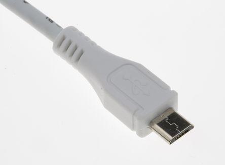 This is Male Micro USB B to Male Micro USB B Charging Cable USB 2.0 300mm manufactured by RS Pro. The manufacturer part number is 121-3243. The product complies with all safety standards, such as ul 2725. While the connector B is male micro usb b. It contains a/an usb 2.0 type USB . The connector A is male micro usb b connector. The sheath has an adorable white colour. Its accurate length is 300mm.