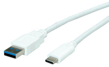 This is Male USB A to Male USB C Cable Assembly USB 3.1 0.5m manufactured by RS Pro. The manufacturer part number is 144-8616. The product complies with all safety standards, such as awm 2725. While the connector B is male usb c. It contains a/an usb 3.1 type USB . The connector A is male usb a connector. The sheath has an adorable white colour. Its accurate length is 0.5m.