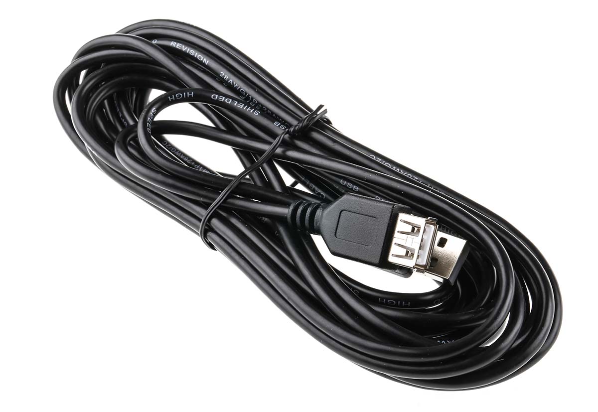 This is USB 2.0 Male USB 2.0 A to Female USB 2.0 A USB Cable 5m manufactured by RS PRO. The manufacturer part number is 182-8489. Connector 2 is a female connector. It is of usb 2.0 type USB version . This connector 1 is a male. The sheath has an adorable black colour. Its accurate length is 5m. While the Connector 2 is usb a. Connector 1 is usb a. Additionally, it offers a standard usb cable type USB cable .