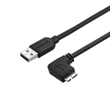 This is Male 9 Pin USB 3.0 Type A to Male 10 Pin USB 3.0 Micro B 1m USB Cable manufactured by Startech. The manufacturer part number is USB3AU1MRS. The product complies with all safety standards, such as ce, reach. While the connector B is angled male usb micro b. The connector A is male usb a connector. The sheath has an adorable black colour. Its accurate length is 1m.
