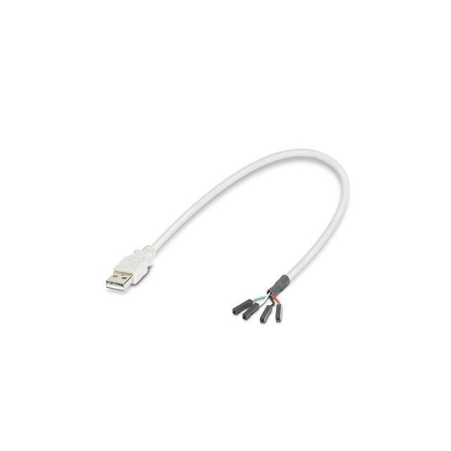 This is Male USB A to Unterminated Cable 300mm manufactured by Phoenix Contact. The manufacturer part number is 1405552. This connector 1 is a male. Its accurate length is 300mm. While the Connector 2 is unterminated. Connector 1 is usb a. Additionally, it offers a standard usb cable type USB cable . The product is available in a male to cable (round) configuration. Furthermore, the product is shielded with unshielded. It is assigned with possible HTSUS value of 8544.42.2000. It has a classic white colour. In addition, bulk is the available packaging type of the product. Its accurate length is 0.98' (300.0mm). The phoenix contact's product offers user-desired applications. The product is designated with the ear99 code number.