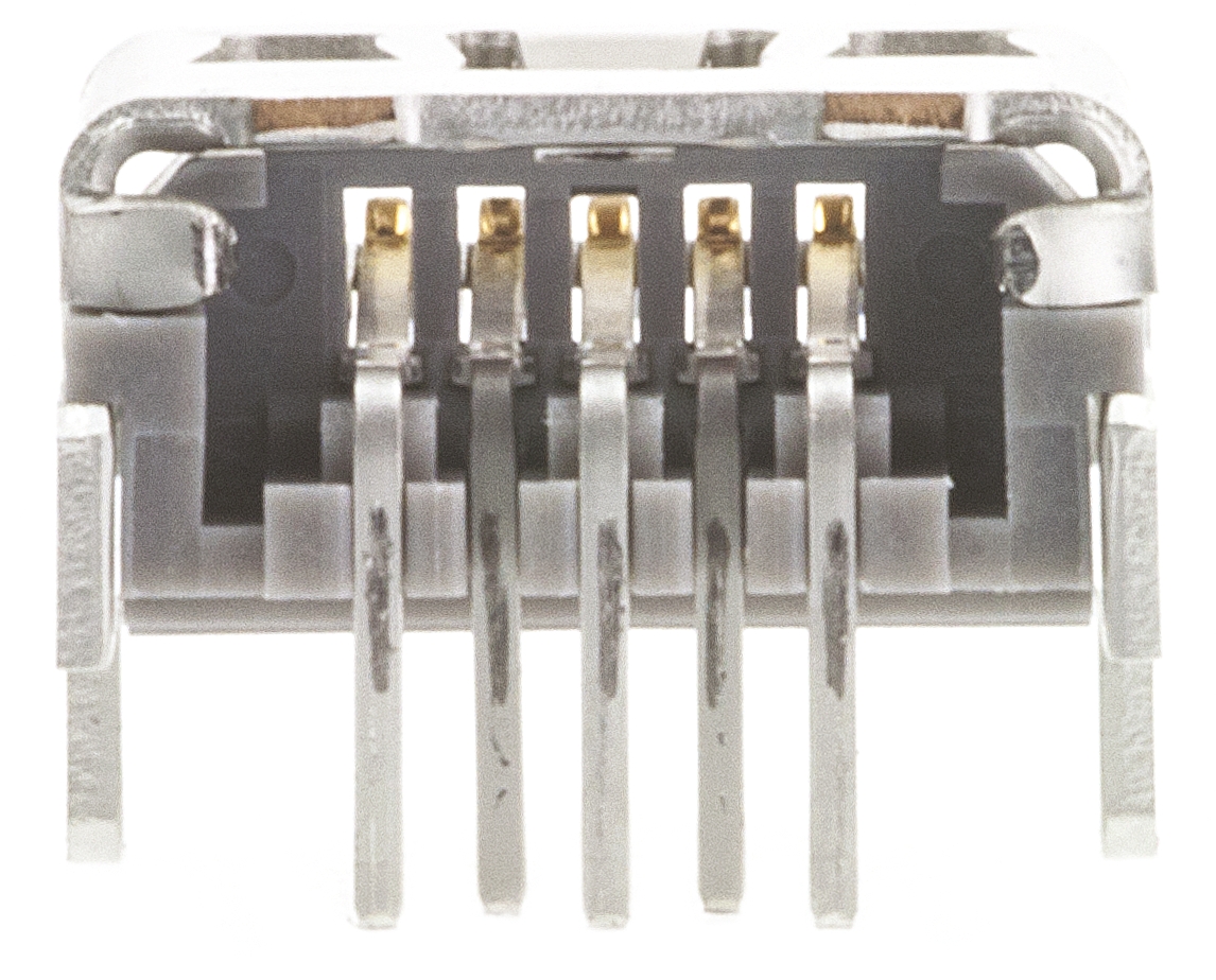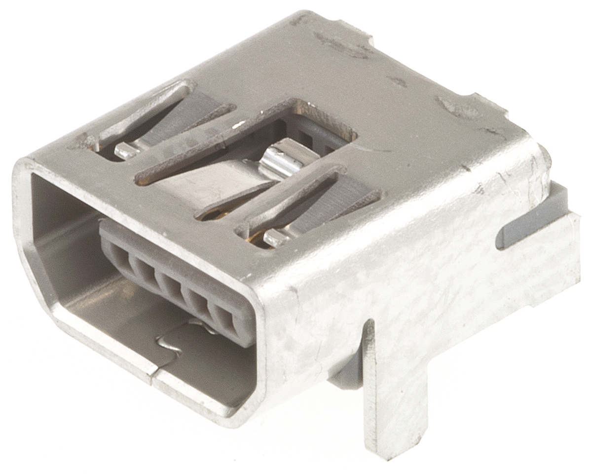 This is On-The-Go Series 56579 Series Number Right Angle Through Hole Mount Version 2.0 Type AB Mini USB Connector manufactured by Molex. The manufacturer part number is 56579-0519. The product has a current rating of 1.0a. It is of 2.0 type USB version . The product is available in through hole configuration. Moreover, the product has a nominal 30.0 v voltage rating. Whereas, the minimum operating temperature of the product is 0.0°c. In addition, female is the available "Gender" of the product. It contains a/an mini ab type USB . It allows solder termination method. The product on-the-go, is a highly preferred choice for users. The product is made from sturdy copper alloy materials. It has a maximum operating temperature of +50°c. It has right angle body orientation. It carries [Serial Number] serial number.