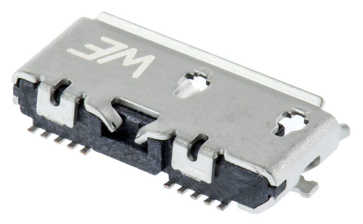 This is Right Angle SMT Type B Version 3.0 Micro USB Connector Receptacle manufactured by Wurth Elektronik. The manufacturer part number is 692622030100. The product has a current rating of 1.8a. It is of 3.0 type USB version . The product is available in surface mount configuration. Moreover, the product has a nominal 30.0 v voltage rating. In addition, female is the available "Gender" of the product. It contains a/an b type USB . It allows solder termination method. Whereas, the minimum operating temperature of the product is -20.0°c. The product wr-com, is a highly preferred choice for users. It has a maximum operating temperature of +85°c. It has right angle body orientation. The product is made from sturdy phosphor bronze materials.
