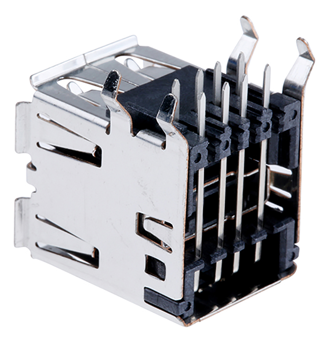 This is Dual Port Right Angle Through Hole Version 2.0 Type A USB Connector Receptacle manufactured by TE Connectivity. The manufacturer part number is 5787745-4. It is of 2.0 type USB version . The product is available in through hole configuration. In addition, female is the available "Gender" of the product. It contains a/an a type USB . This product features 2 number of ports. It allows solder termination method. It has right angle body orientation. The product is made from sturdy copper alloy materials.