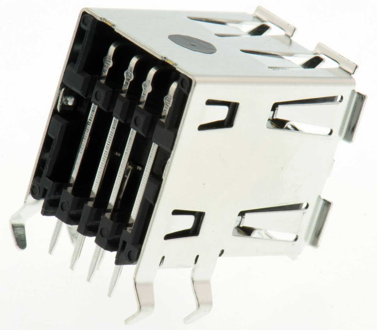 This is Dual Port Right Angle Through Hole Version 2.0 Type A USB Connector Receptacle manufactured by TE Connectivity. The manufacturer part number is 1903815-1. It is of 2.0 type USB version . The product is available in through hole configuration. In addition, female is the available "Gender" of the product. It contains a/an a type USB . This product features 2 number of ports. It allows solder termination method. It has right angle body orientation. The product is made from sturdy copper alloy materials.