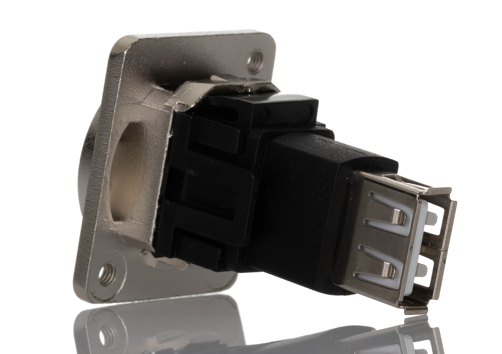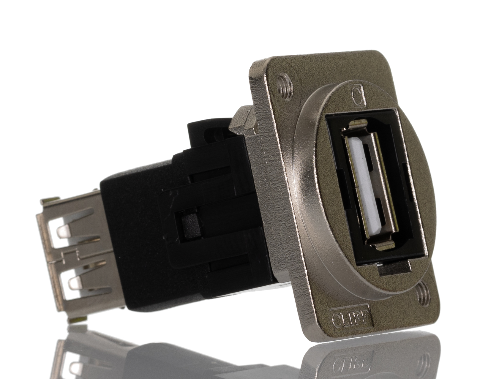 This is CP3 Series Dual Port Panel Mount Version 2.0 Type A USB Connector Plug Socket manufactured by RS Pro. The manufacturer part number is 175-0146. The product has a current rating of 1.5a. It is of 2.0 type USB version . The product is available in panel mount configuration. Moreover, the product has a nominal 30 v voltage rating. In addition, female to female is the available "Gender" of the product. It contains a/an a to a type USB . It allows screw termination method. This product features 2 number of ports. Whereas, the minimum operating temperature of the product is -20°c. The product cp3, is a highly preferred choice for users. It has a maximum operating temperature of 50°c. It has straight body orientation. The product is made from sturdy gold plated materials.