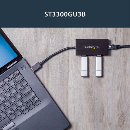 This is 3 Port USB 3.0 Hub with Gigabit Ethernet Adapter manufactured by Startech. The manufacturer part number is ST3300GU3B. Additionally, it has a usb 3.0 USB standard . The given dimensions of the product include 87 x 43 x 14mm. Moreover, the product gets power from ac adapter. It is designed with a standard usb a type USB connection . In addition, the height is 14mm. Furthermore, the product is 87mm wide. The product comes in 43mm depth. It has a network connection of rj45 type . In addition, it includes 3 USB ports .