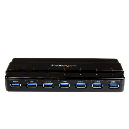 This is 7 Port USB 3.0 Hub manufactured by Startech. The manufacturer part number is ST7300USB3B. Additionally, it has a usb 3.0 USB standard . The given dimensions of the product include 172 x 70 x 23mm. Moreover, the product gets power from ac adapter. It is designed with a standard usb a type USB connection . In addition, the height is 23mm. Furthermore, the product is 172mm wide. The product comes in 70mm depth. In addition, it includes 7 USB ports .