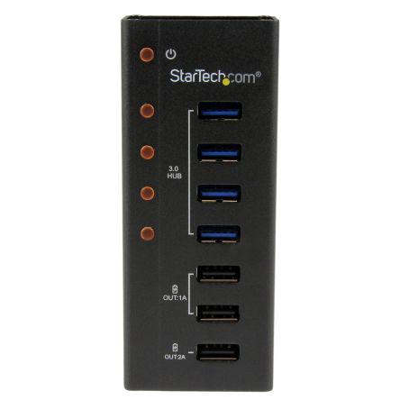 This is 7 Port USB 3.0 Hub manufactured by Startech. The manufacturer part number is ST4300U3C3. Additionally, it has a usb 3.0 USB standard . The given dimensions of the product include 110 x 45 x 24mm. Moreover, the product gets power from ac adapter. It is designed with a standard usb a type USB connection . In addition, the height is 24mm. Furthermore, the product is 110mm wide. The product comes in 45mm depth. In addition, it includes 7 USB ports .