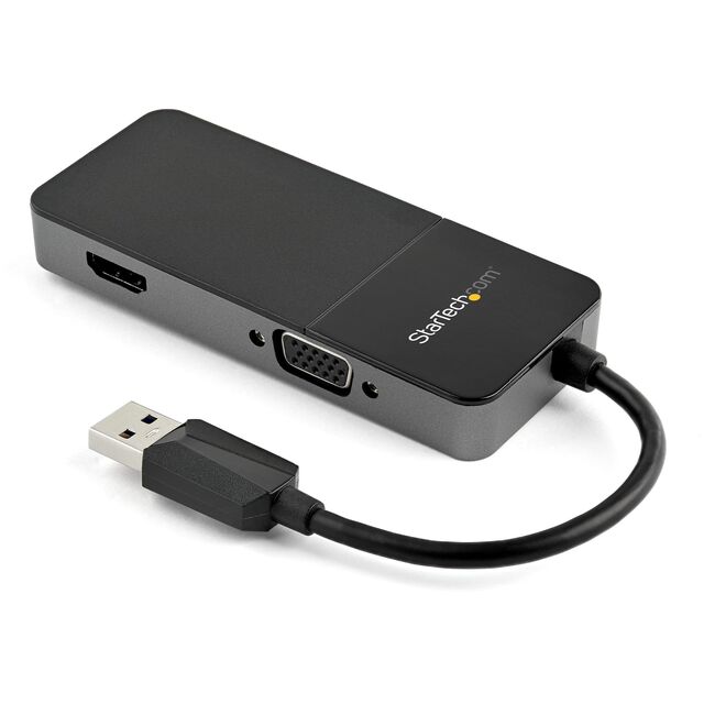 This is USB A to HDMI VGA Adapter USB 3.0 2 Supported Display(s) - 3840x2160 1920x1080 manufactured by StarTech.com. The manufacturer part number is USB32HDVGA. Additionally, it has a usb 3.0 USB standard . It is designed with a standard usb a type USB connection . It has an attractive hdmi, vga type video connection . It supports 2 displays . With 30hz refresh rate . It exhibits a maximum 4k resolution . It is assigned with possible HTSUS value of 8471.80.1000. The product is rohs3 compliant. It has conversion specifications from usb - a male. It comes in usb to hdmi, vga configuration. In addition, it is reach affected. The startech.com's product offers user-desired applications. Can effectively be converted to hdmi female, vga female. Its typical moisture sensitivity level is vendor undefined. It has a long 1 weeks standard lead time. In addition, bag is the available packaging type of the product. The product is designated with the ear99 code number.
