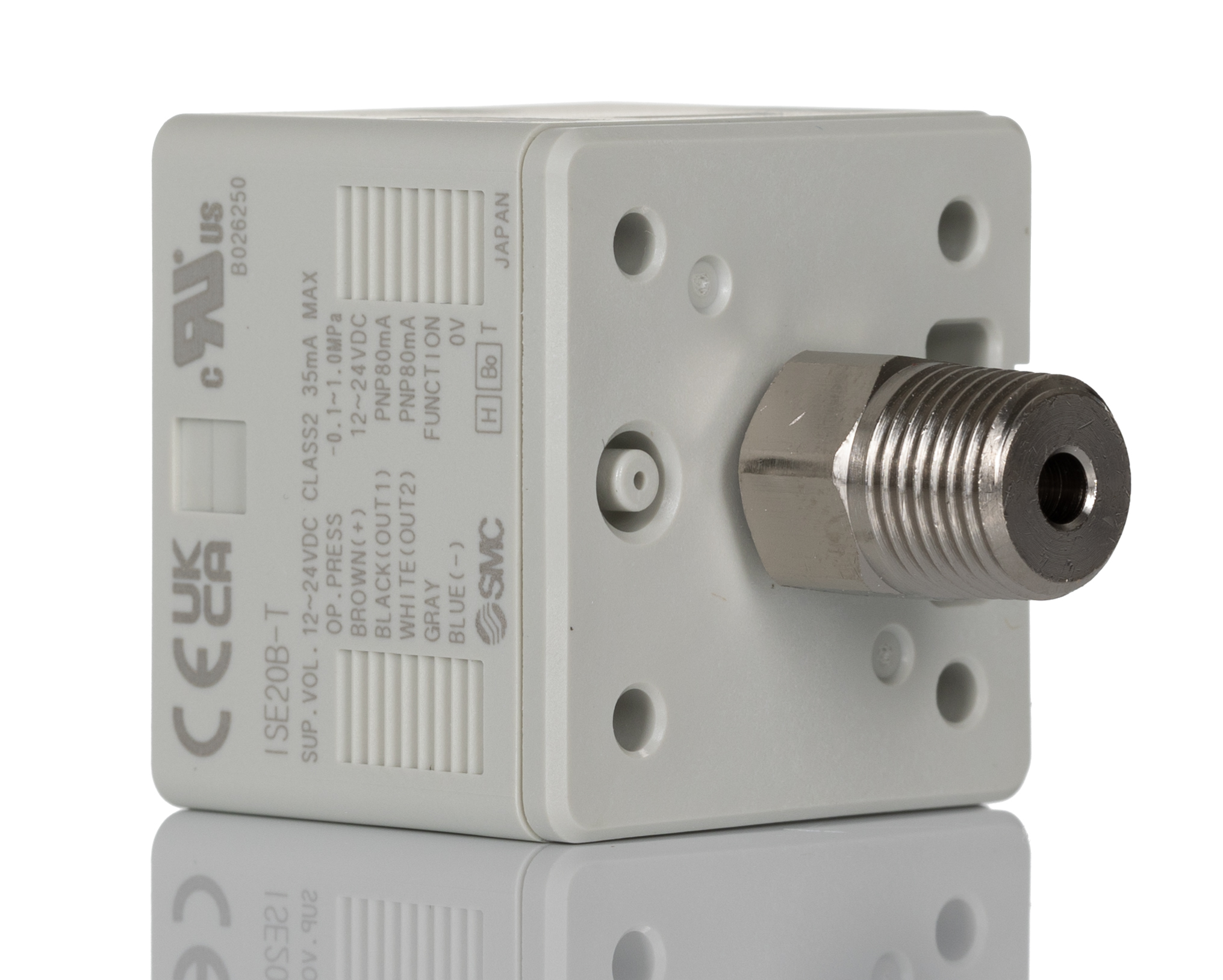 This is Digital Hydraulic Pressure Switch R 1/8 -0.1MPa to 10 bar manufactured by SMC. The manufacturer part number is ISE20B-T-01-W. Moreover, it has an electrical connection of r 1/8 type . It has an adorable r thread connection standard . It features 10 bar maximum operating pressure. It is IP rated with ip65. It has a minimum 0.1mpa operating pressure . The product ise20, is a highly preferred choice for users. It has a high-quality pnp output switch . While it is a sort of positive pressure. In addition, the height is 26.5mm. Furthermore, the product is 30 mm wide. It carries a 24 v of voltage. It has a standard 1/8 in g port size. pressure sensor is a versatile product designed to provide user-defined applications. It has a maximum operating temperature of 50°c. It provides high accuracy of 2 %fs.