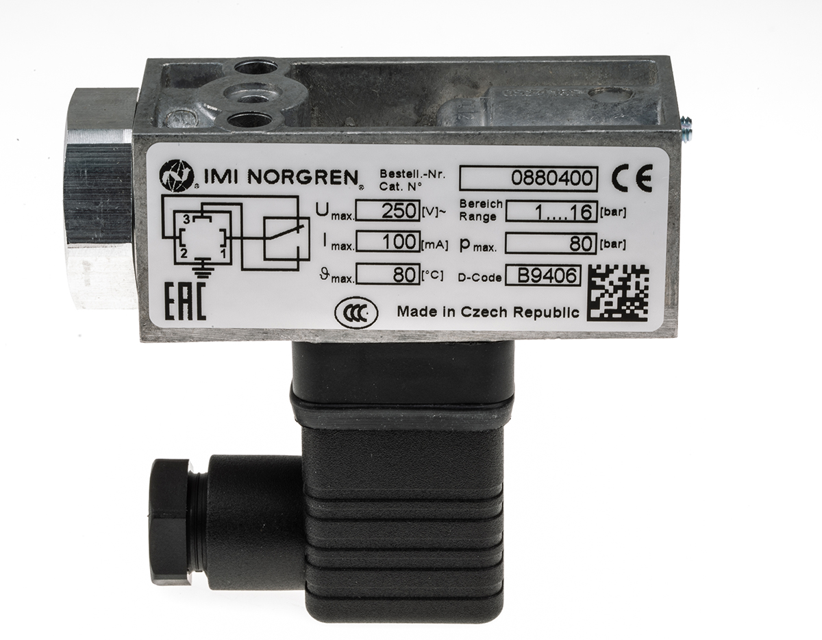 This is IMI Pressure Switch G 1/4 1bar to 16 bar manufactured by Norgren. The manufacturer part number is 0880400000000000. Moreover, it has an electrical connection of g 1/4 type . pressure switch is a versatile product designed to provide user-defined applications. It has an adorable g thread connection standard . It features 16 bar maximum operating pressure. It is IP rated with ip65. It has a minimum 1bar operating pressure . The product 18d, is a highly preferred choice for users. While it is a sort of vacuum. In addition, the height is 70mm. Furthermore, the product is 30 mm wide. The product comes in 30mm depth. It has a high-quality spdt output switch . Whereas, the minimum operating temperature of the product is -10°c. It has a optional type mount . It has a maximum operating temperature of 85°c. It provides high accuracy of 4% of final value, repeatability: 3% for vacuum.